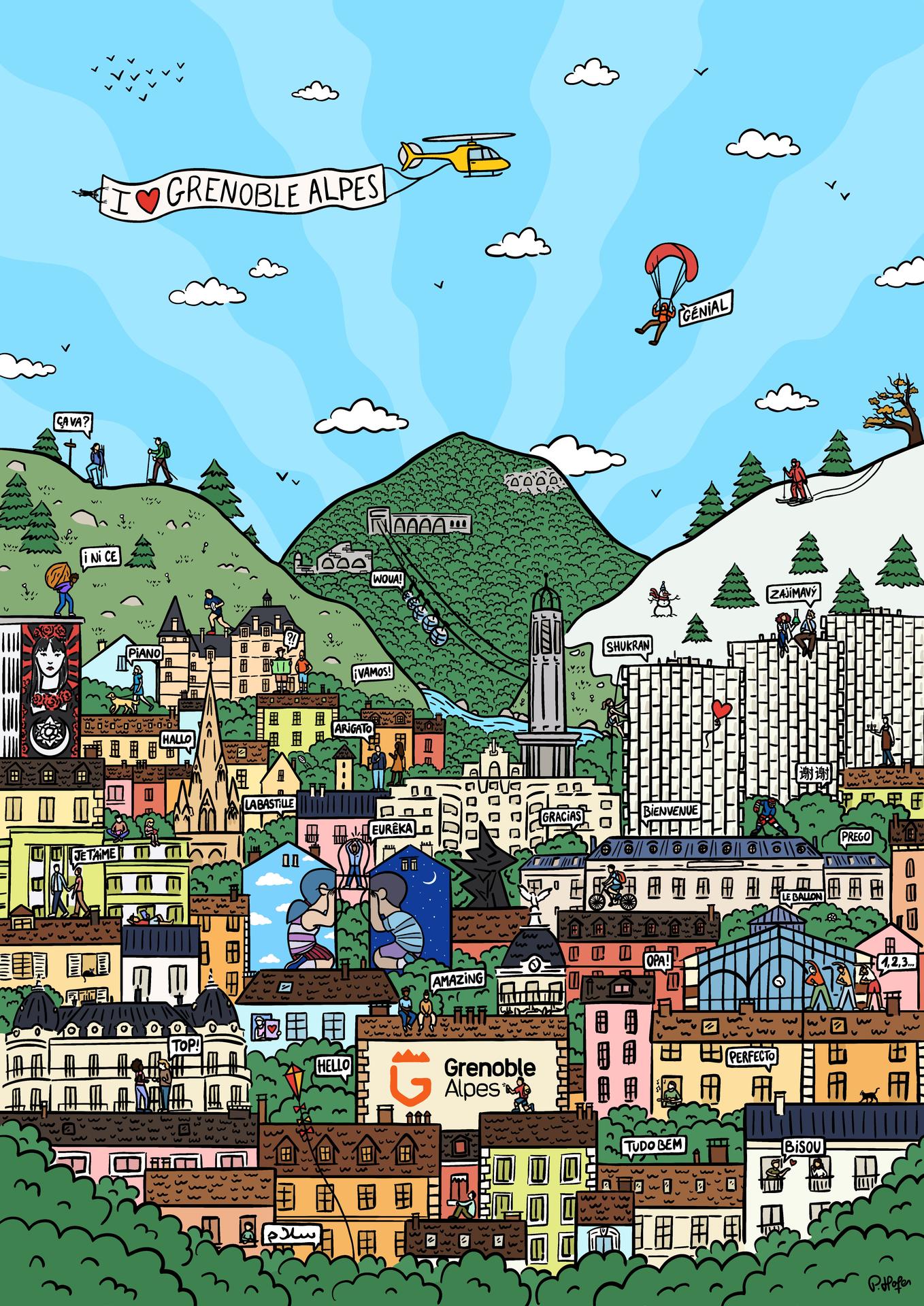Les artistes ont eu carte blanche pour proposer des œuvres originales illustrant l’identité de Grenoble Alpes. Vous pouvez consulter l’appel à créateurs ici.
