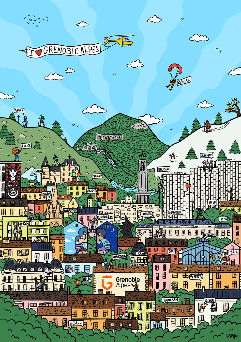 Cette illustration ne met pas seulement en valeur Grenoble, mais aussi toutes les personnes qui lui donnent vie.
